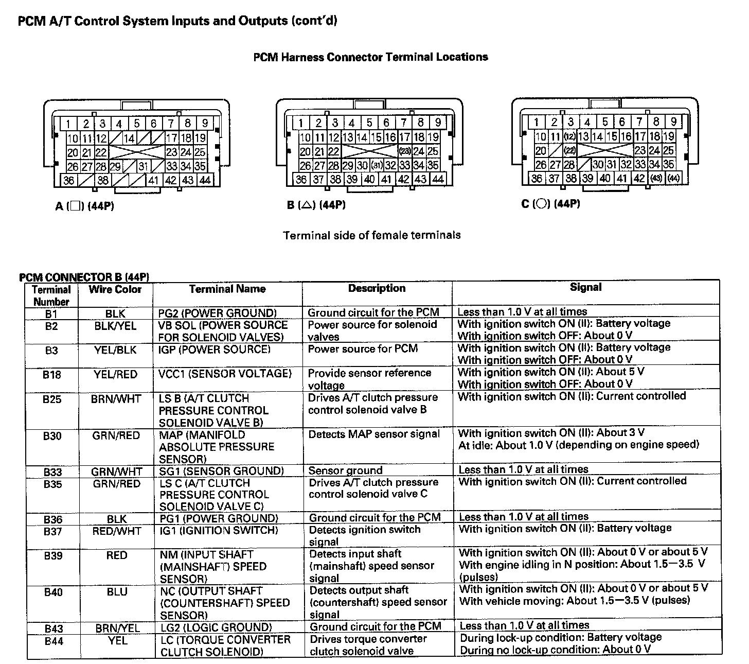 PCM A/T Control System Inputs and OutputsPCM A/T Control System Inputs and Outputs (Part 1):