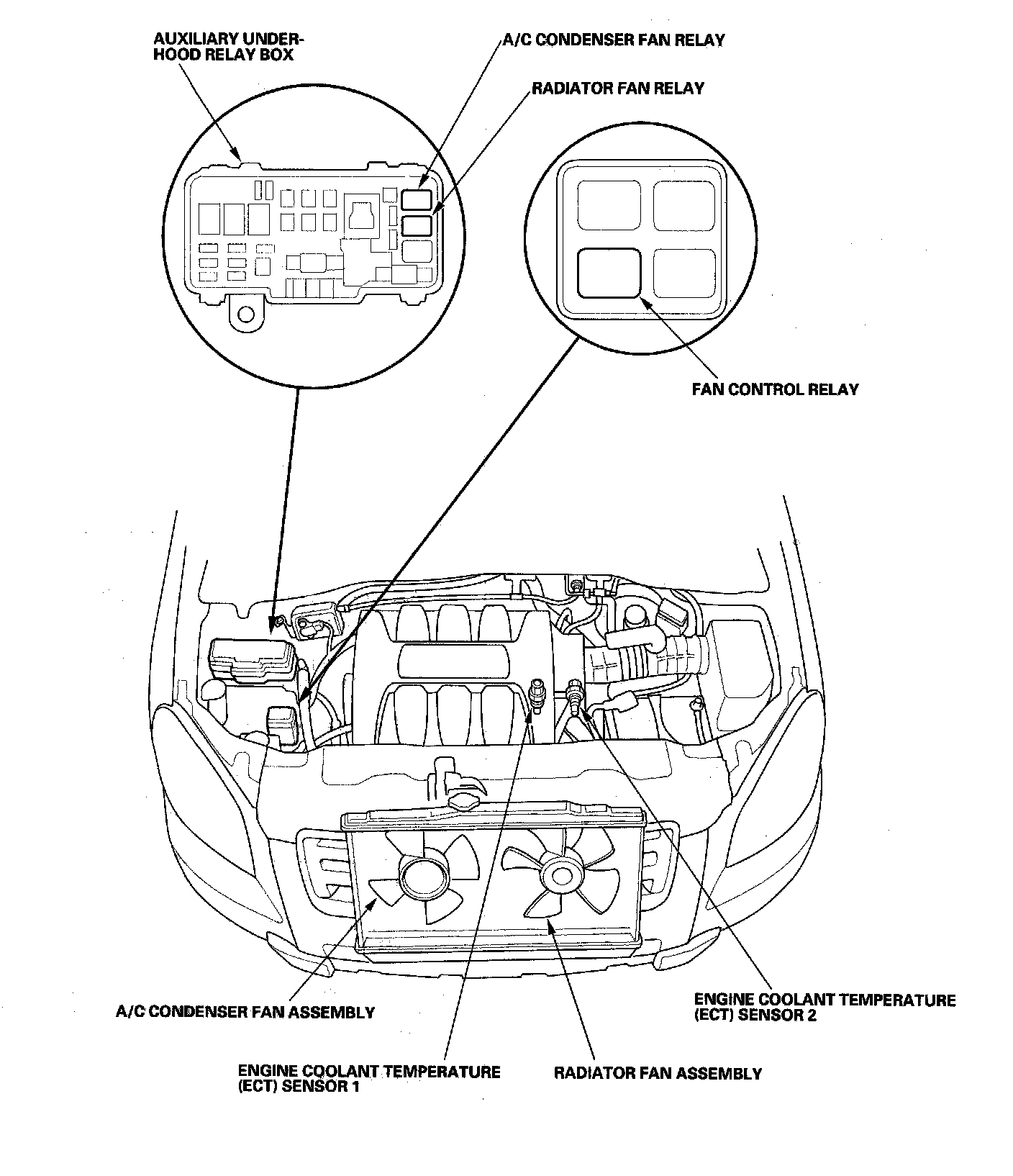 Radiator Cooling Fan Control Module Relay: Locations