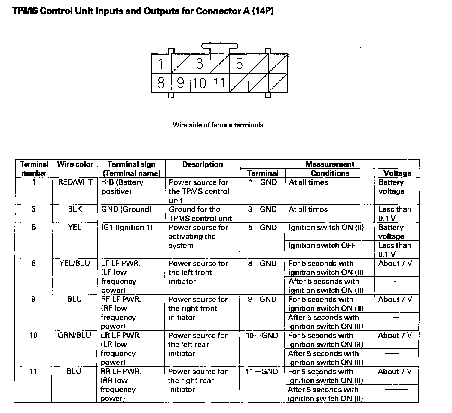 TPMS Control Unit Inputs and Outputs (Part 1):