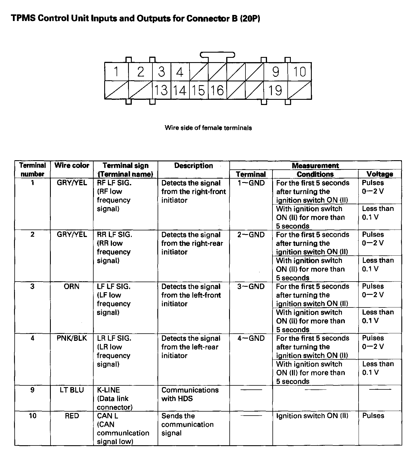 TPMS Control Unit Inputs and Outputs (Part 2):