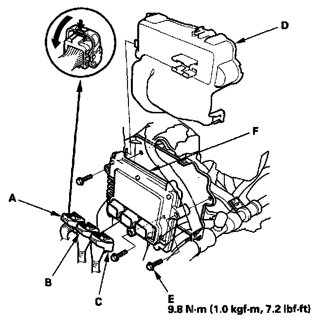NOTE: PCM connectors A, B, and C have symbols (A=[], B=/\, C=O) embosed on them for identification.