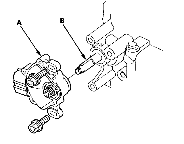 14. Install the transmission range switch (A) gently over the selector control shaft (B), and install the bolts loosely.