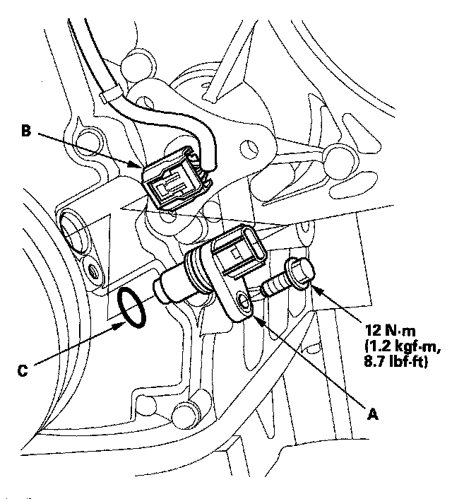 3. Install the parts in the reverse order of removal with a new O-ring (C).