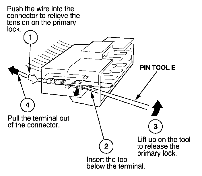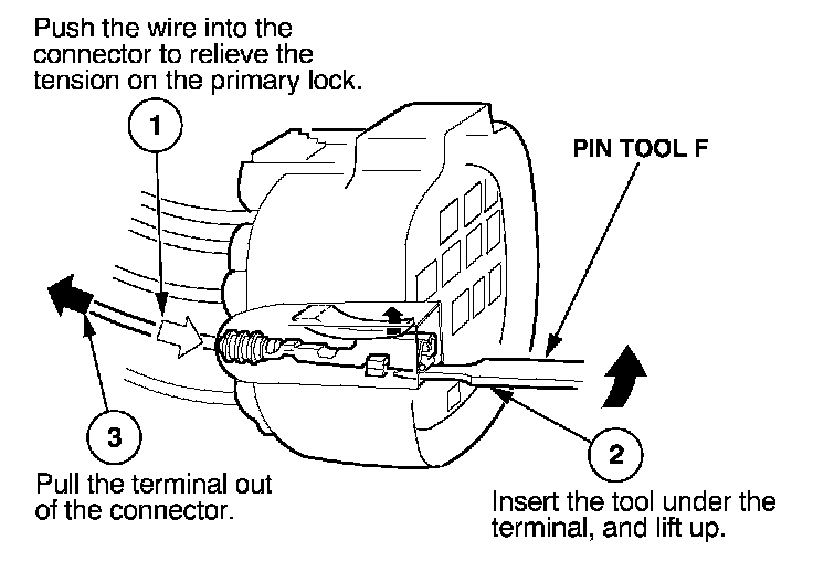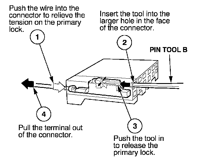 Before you begin, inspect the wire you are about to repair for damage and length. Make sure the wire will be long enough to make a terminal repair without stretching it when you reinstall the terminal in the connector. If the wire is too short, or if access to the connector is too restricted to make a terminal repair, you may need to install a pigtail terminal (a short length of wire with a factory-crimped terminal on it).