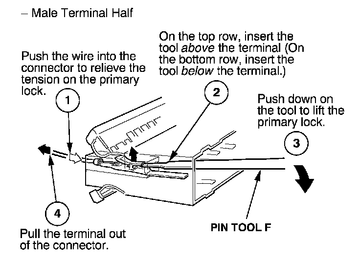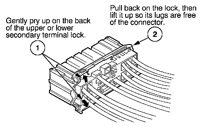 - If it has a secondary terminal lock, go to Connectors With a Secondary Lock. A secondary lock, found on most connectors on some models, is an additional locking device on the connector housing as backup for the primary lock on the terminal.