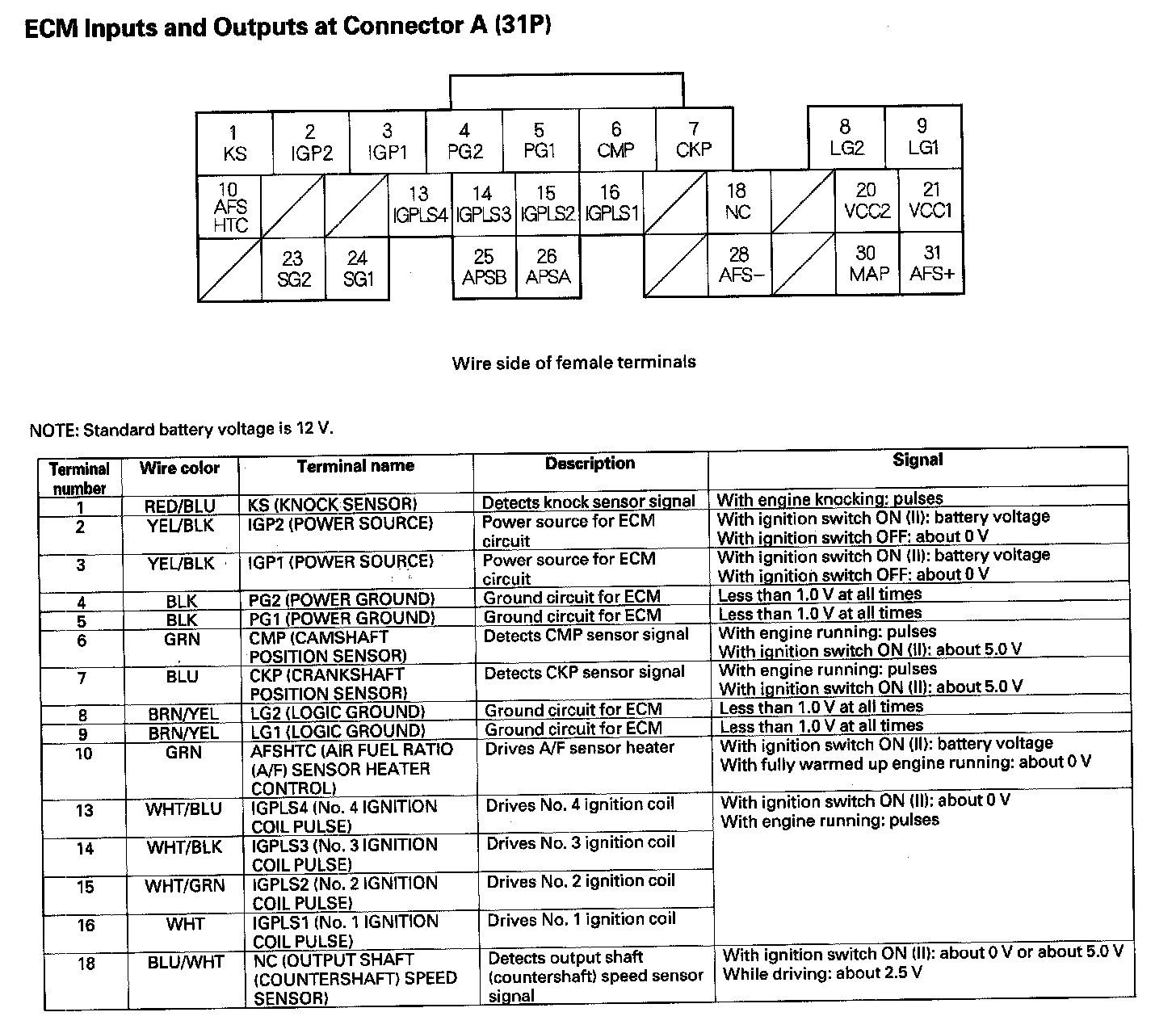 ECM Inputs And Outputs At Connector A (31P) Part 1:
