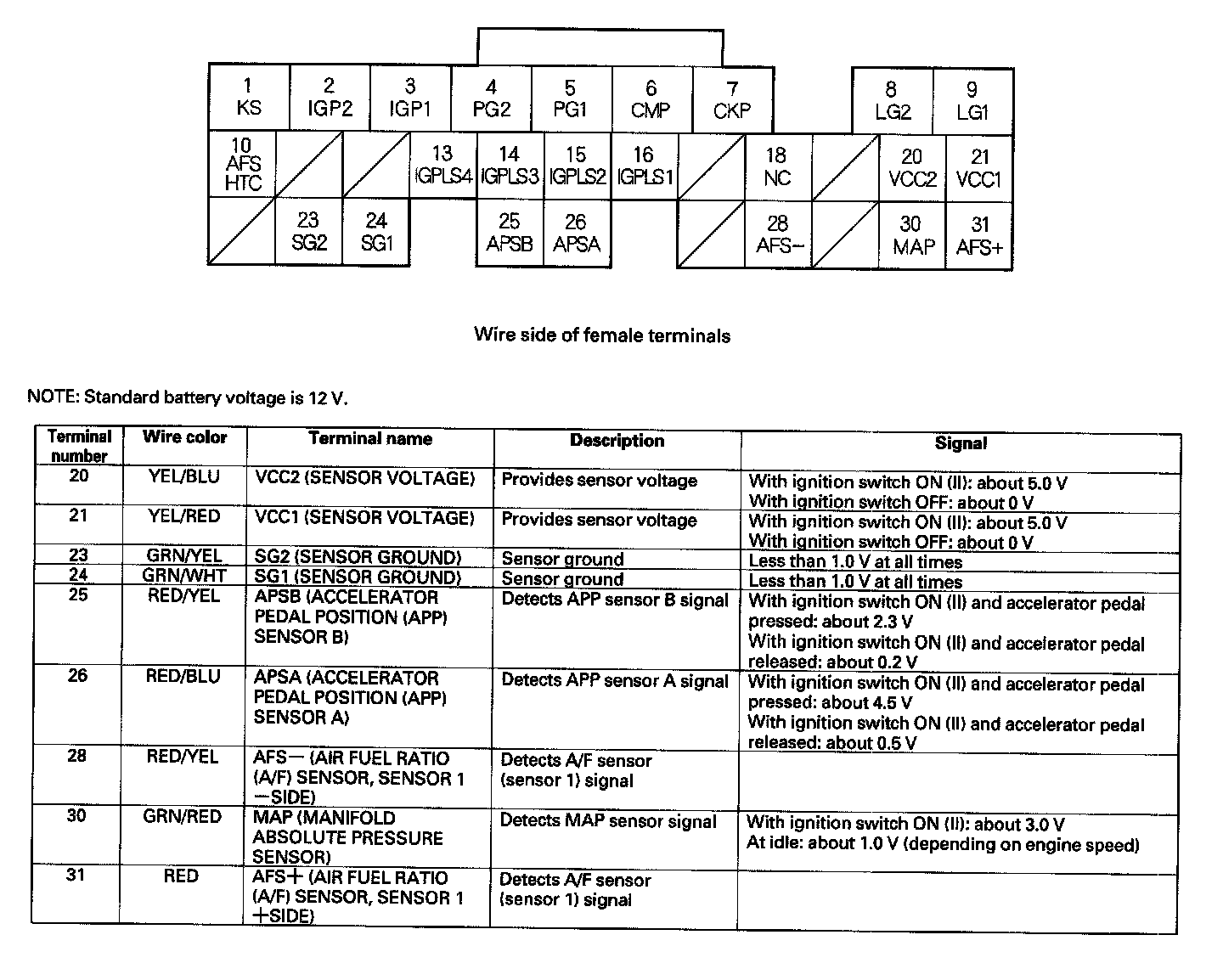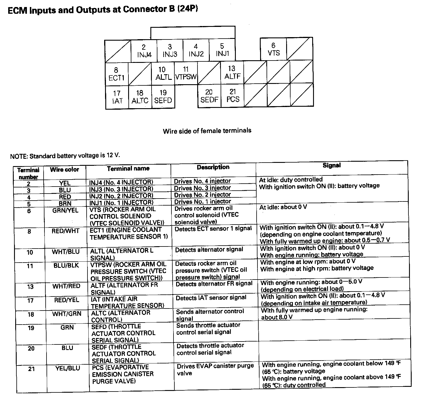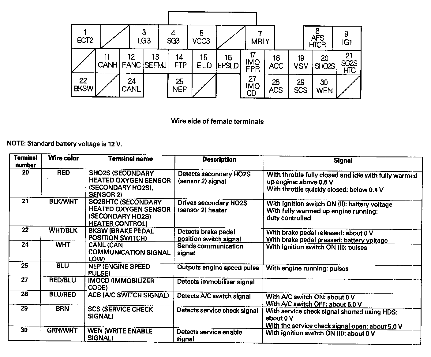 Home >> Honda >> 2007 >> S2000 L4-2.2L >> Repair and Diagnosis >> Powertrain Management >> Computers and Control Systems >> Engine Control Module >> Testing and Inspection >> Pinout Values and Diagnostic Parameters
