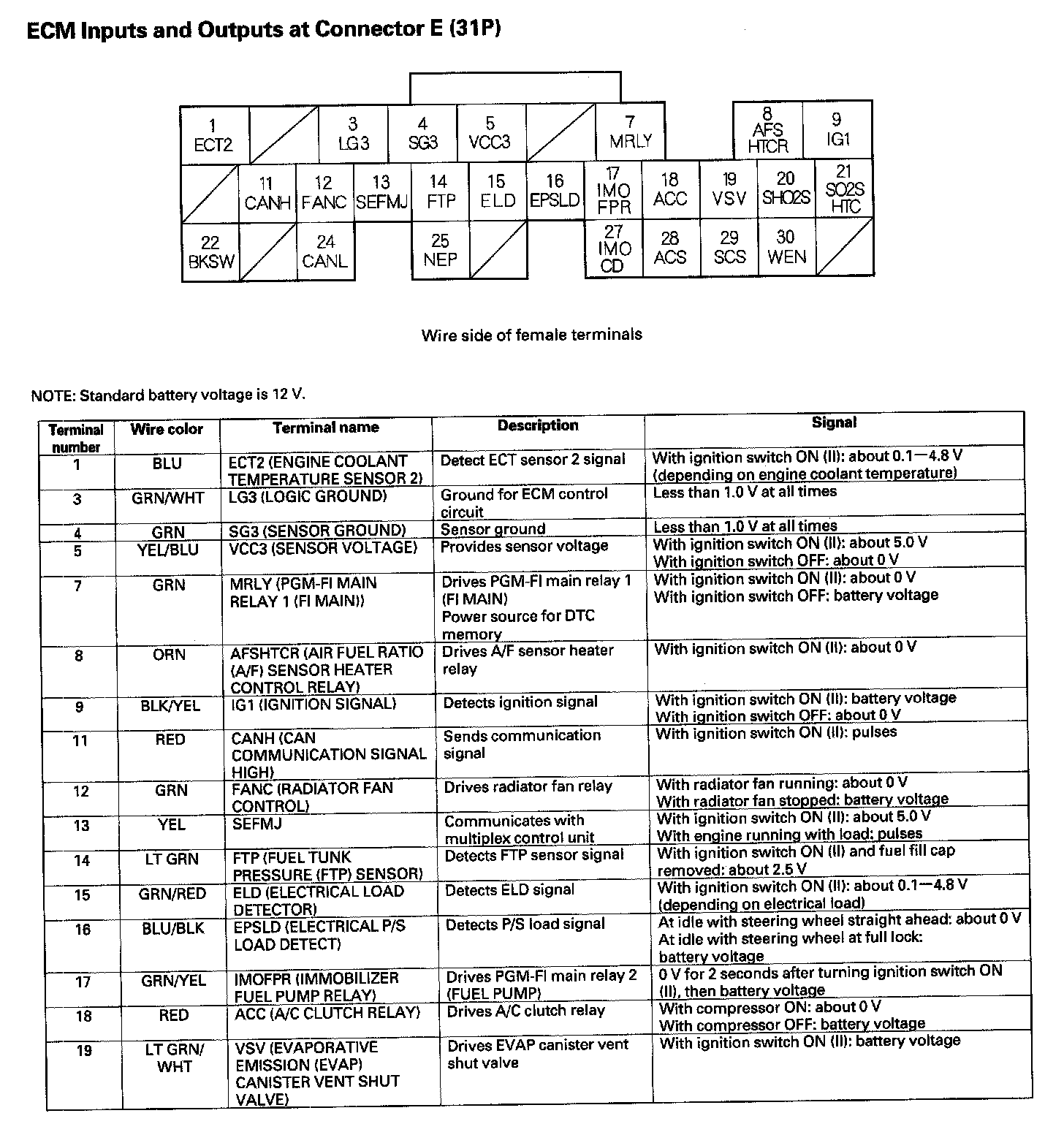ECM Inputs And Outputs At Connector E (31P) Part 1: