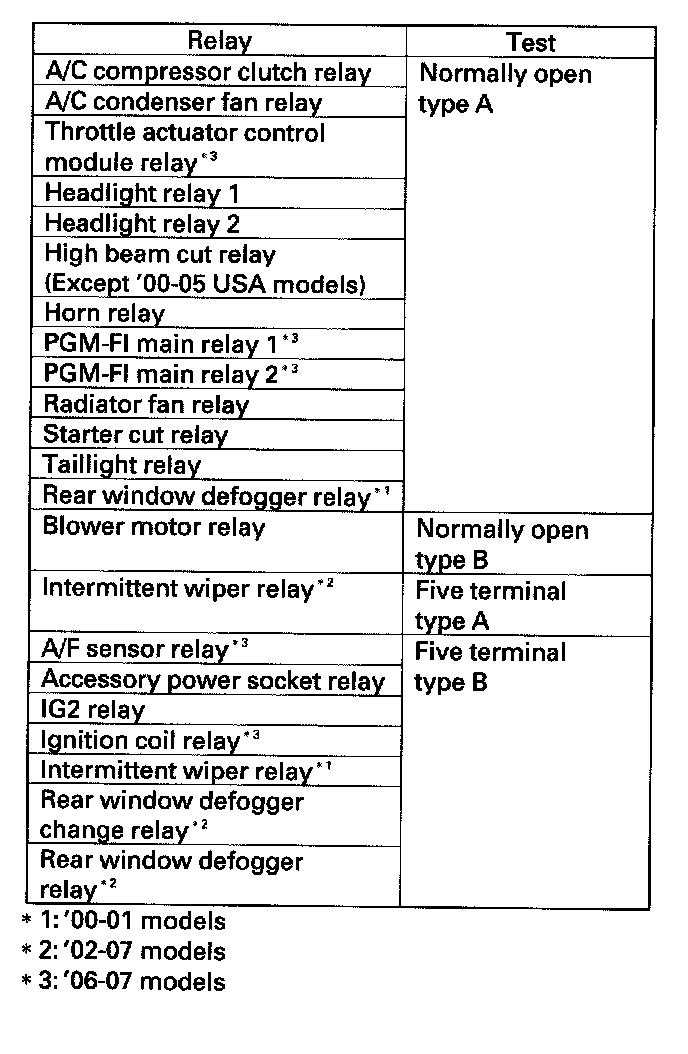 Power Relay TestUse this chart to identify the type of relay, then do the test listed for it.