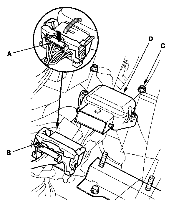 3. Remove the nuts (C) and the throttle actuator control module (D).