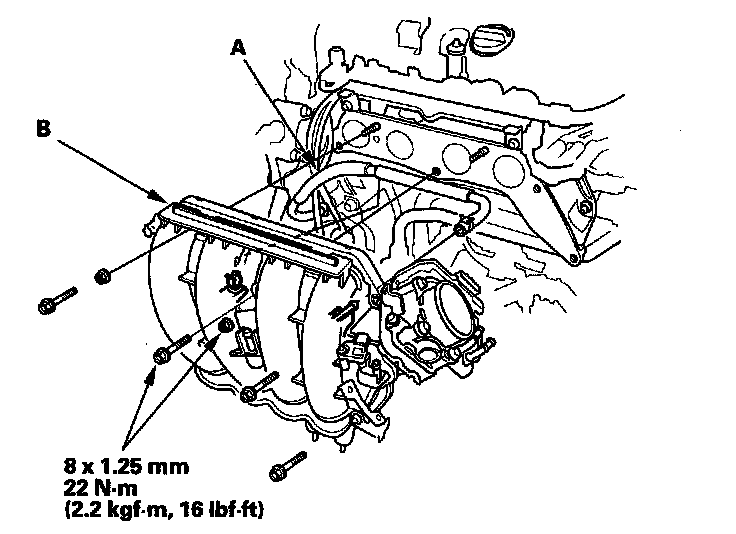 Torque the bolts to 29 N-m (3.0 kgf-m, 22 lbf-ft).