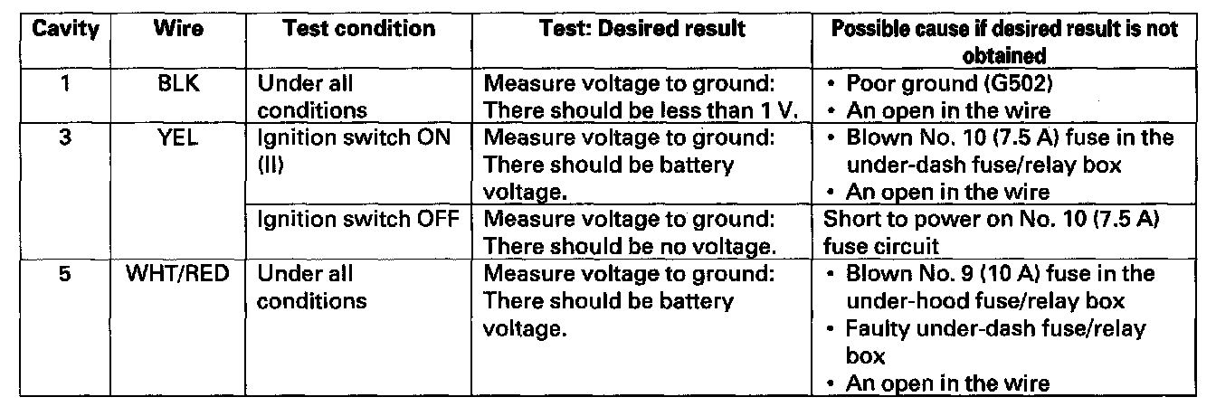 4. Reconnect the connector, and make these input tests at the connector.