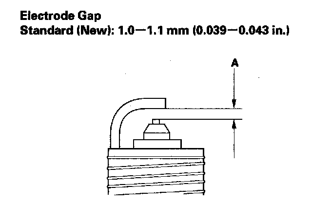 3. Do not adjust the gap (A) of iridium tip plugs, replace the spark plug if the gap is out of specification.