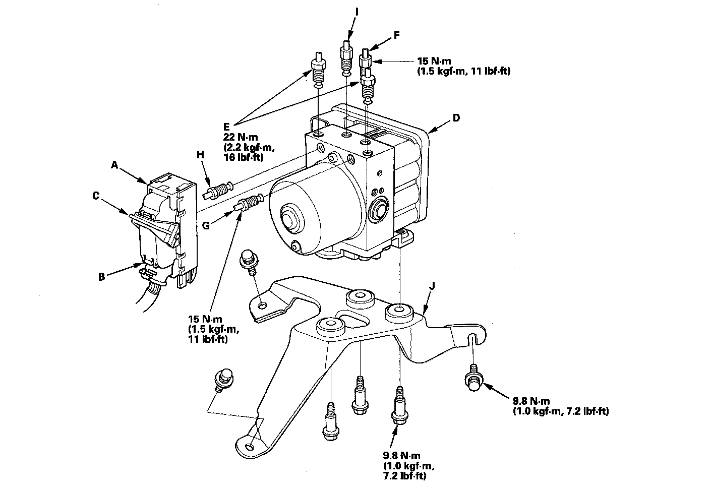 4. Remove the VSA modulator-control unit with the bracket (J) from the body.