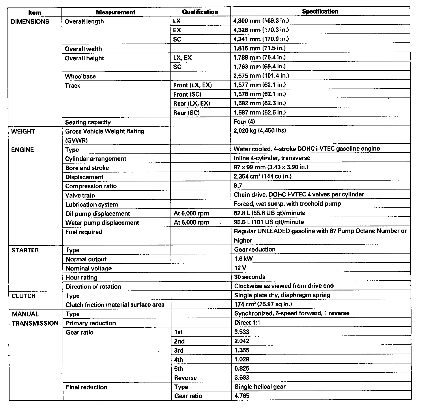 Element 2WD L4-2.4L