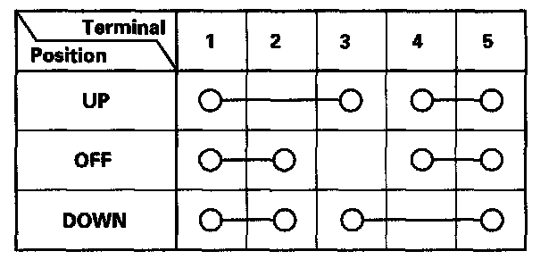 5. Check for continuity between the terminals in each switch position according to the table.