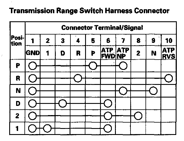 Transmission Range Switch Test1. Disconnect the transmission range switch harness connector (A), then remove the connector (B) from its bracket.