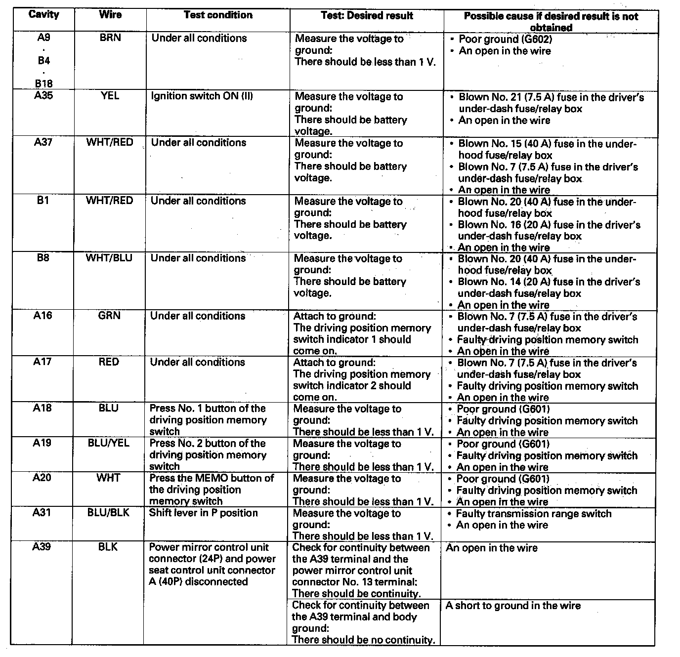 Home >> Honda >> 2008 >> Odyssey V6-3.5L >> Repair and Diagnosis >> Body and Frame >> Seats >> Memory Positioning Systems >> Testing and Inspection >> Component Tests and General Diagnostics >> Power Seat Control Unit Input Test