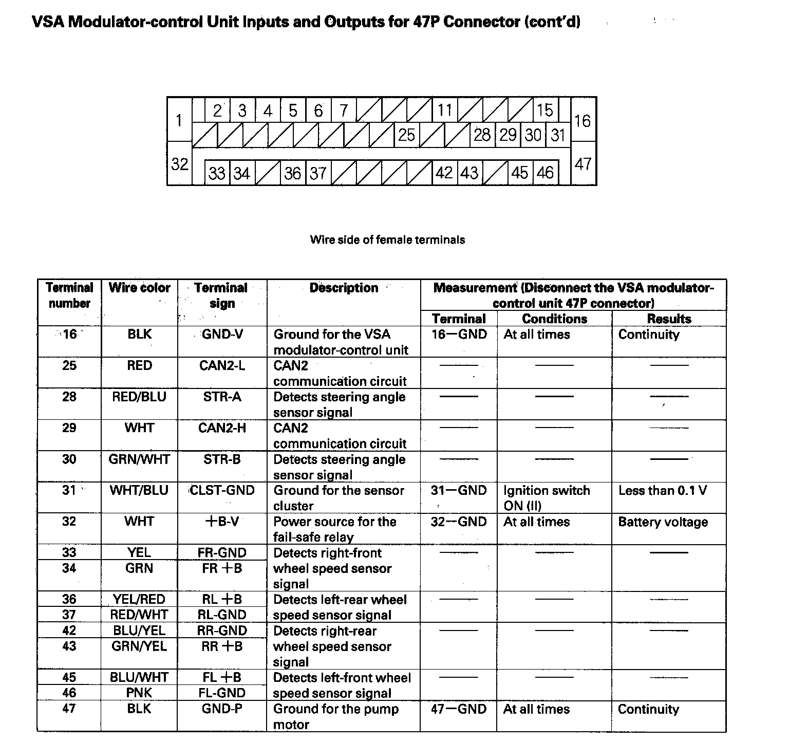 VSA Modulator-control Unit Inputs and Outputs for 47P Connector (Part 1):