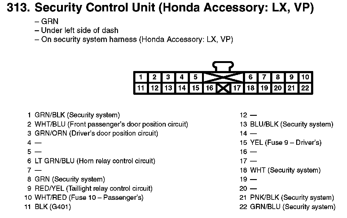 313. Security Control Unit (Honda Accessory: LX, VP):