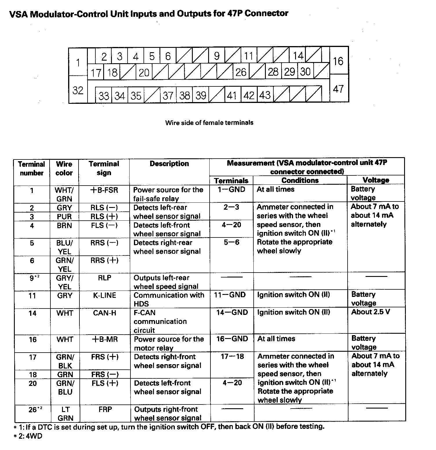 VSA Modulator-Control Unit Inputs and Outputs for 47P Connector (Part 1):
