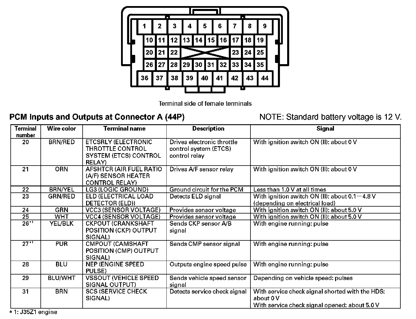 PCM Inputs And Outputs At Connector A (44P) (Part 1):