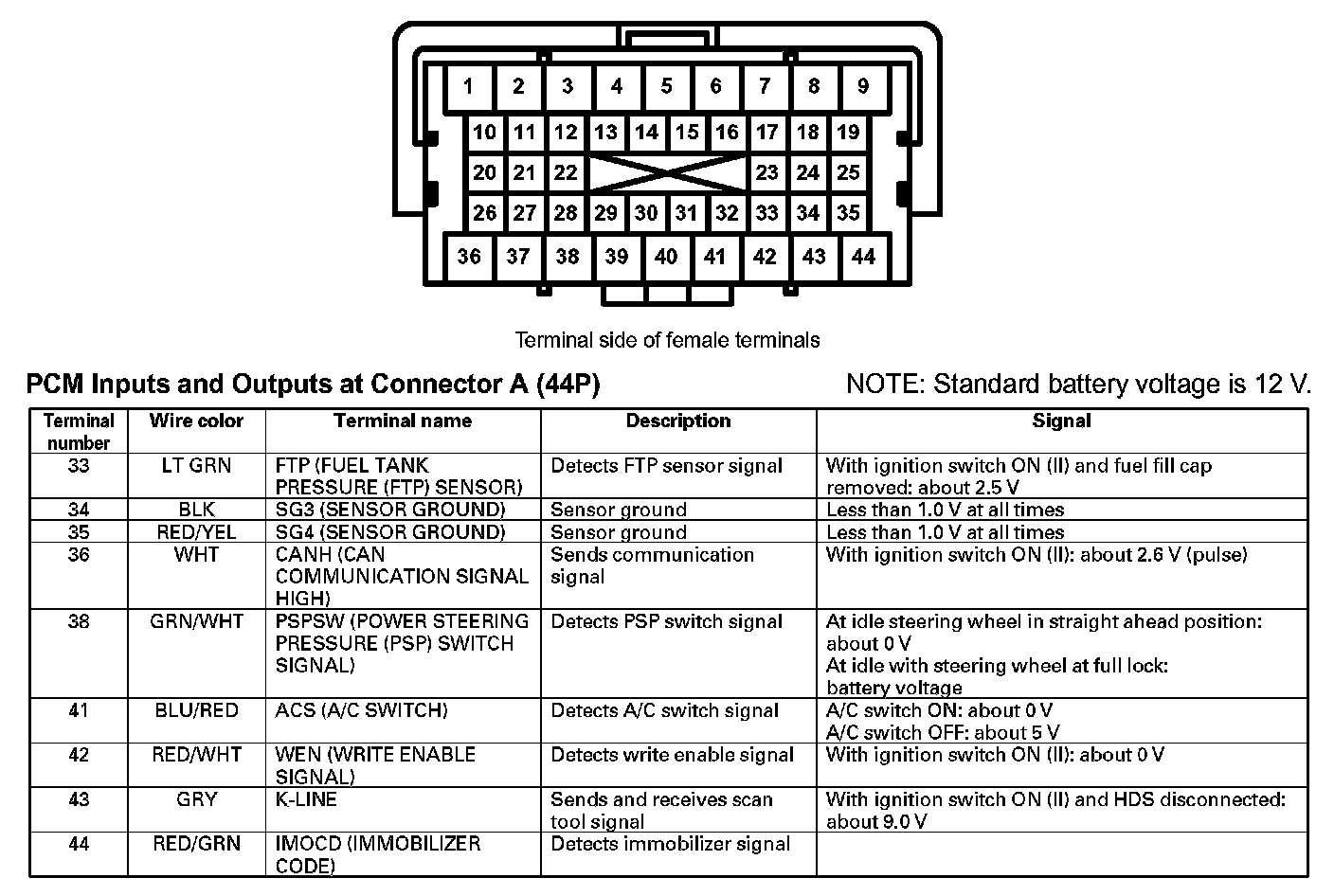 PCM Inputs And Outputs At Connector A (44P) (Part 2):