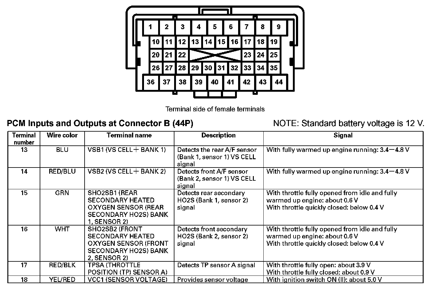 PCM Inputs And Outputs At Connector B (44P) (Part 2):