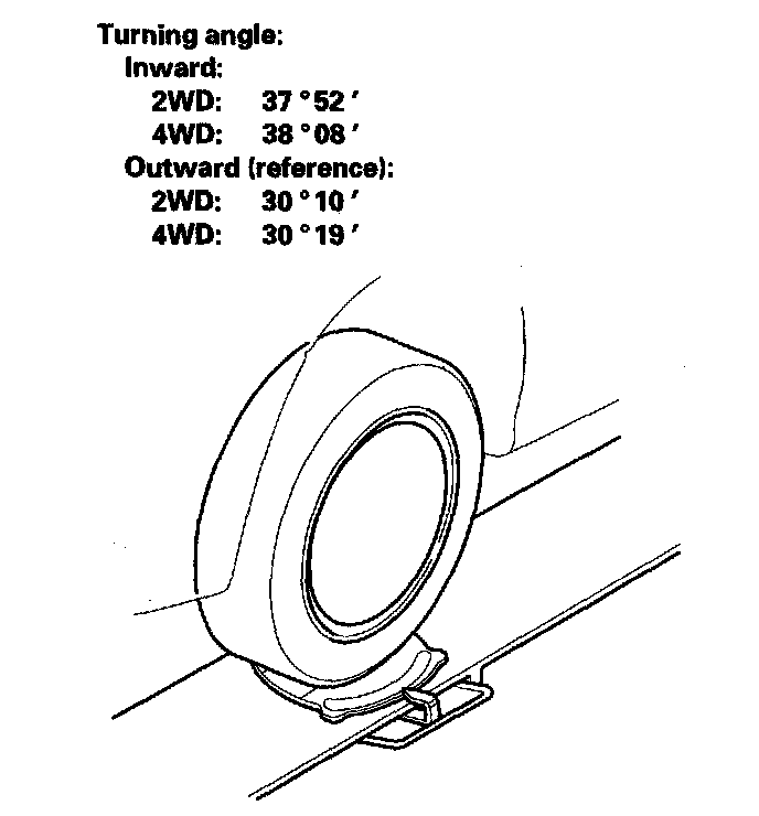 2. If the turning angle is not within the specifications, check for bent or damaged suspension components.