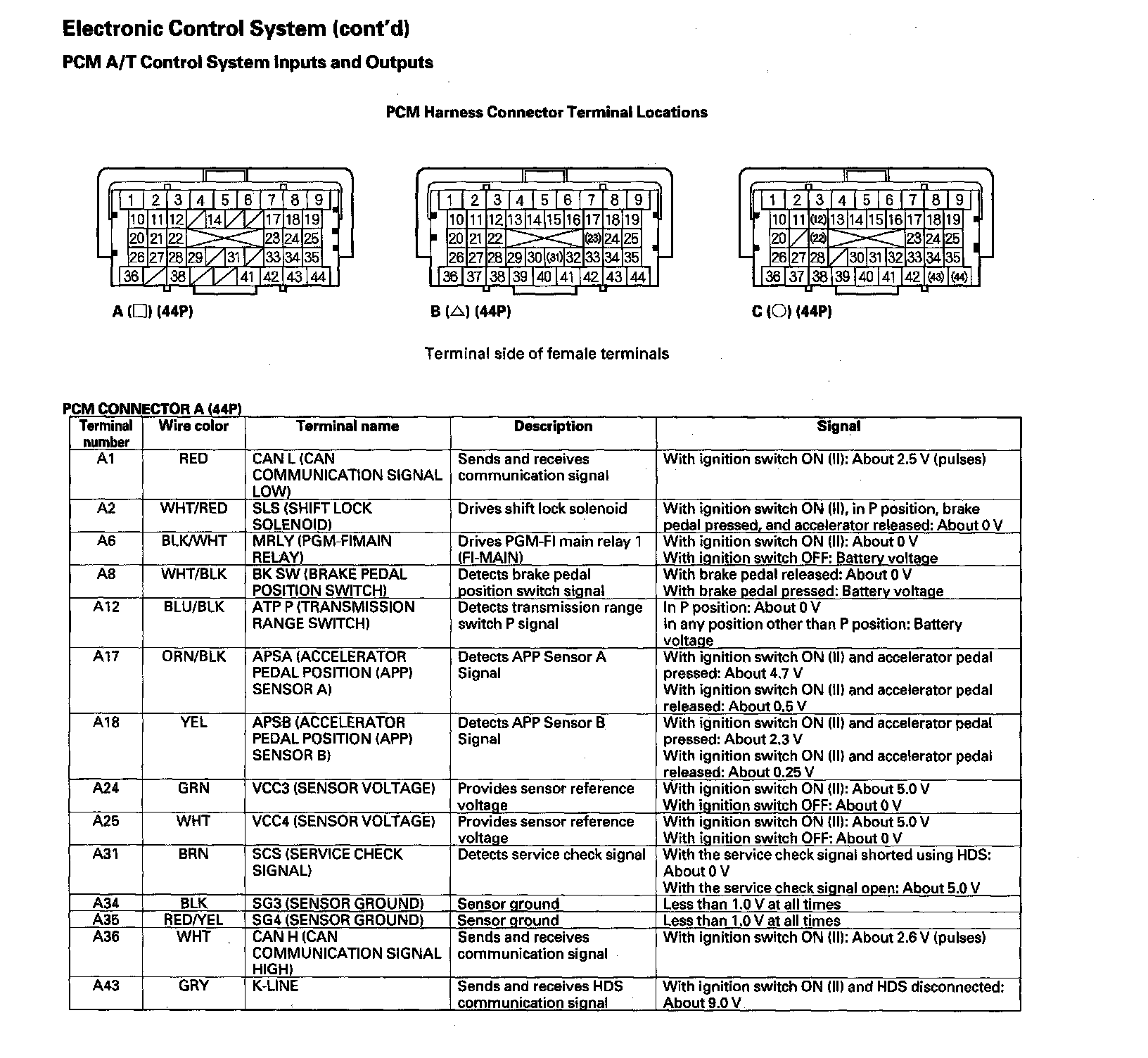 PCM A/T Control System Inputs and Outputs (Part 2):