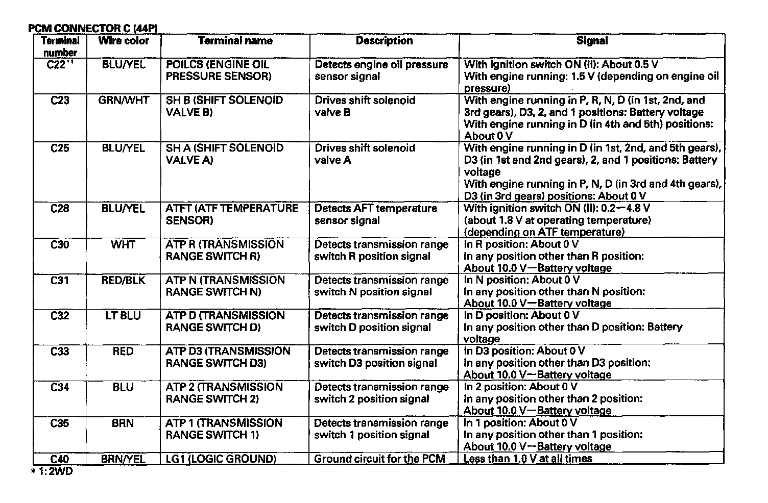 PCM A/T Control System Inputs and Outputs (Part 3):