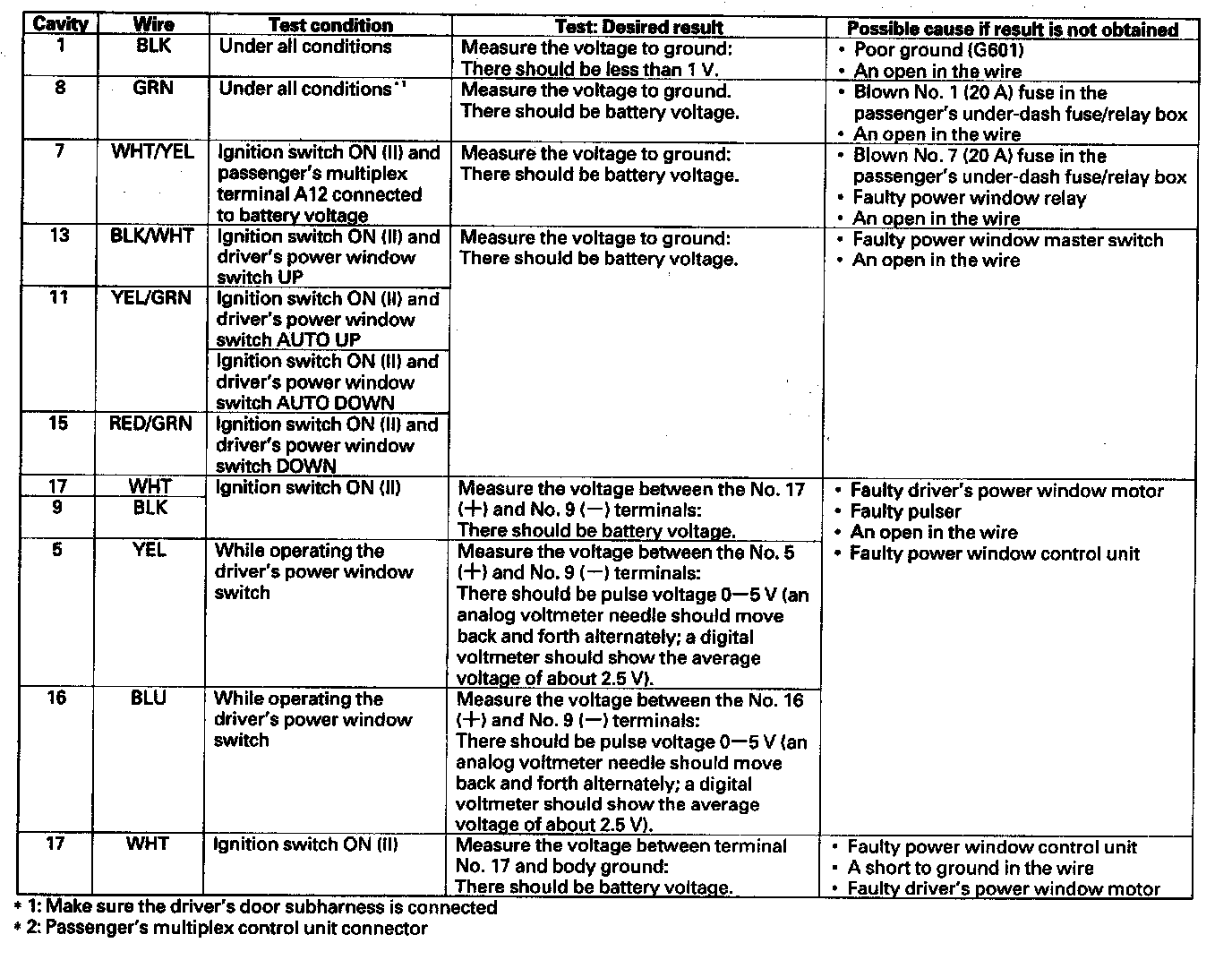 Home >> Honda >> 2008 >> Pilot 2WD V6-3.5L >> Repair and Diagnosis >> Windows and Glass >> Windows >> Testing and Inspection >> Power Window Control Unit Input Test