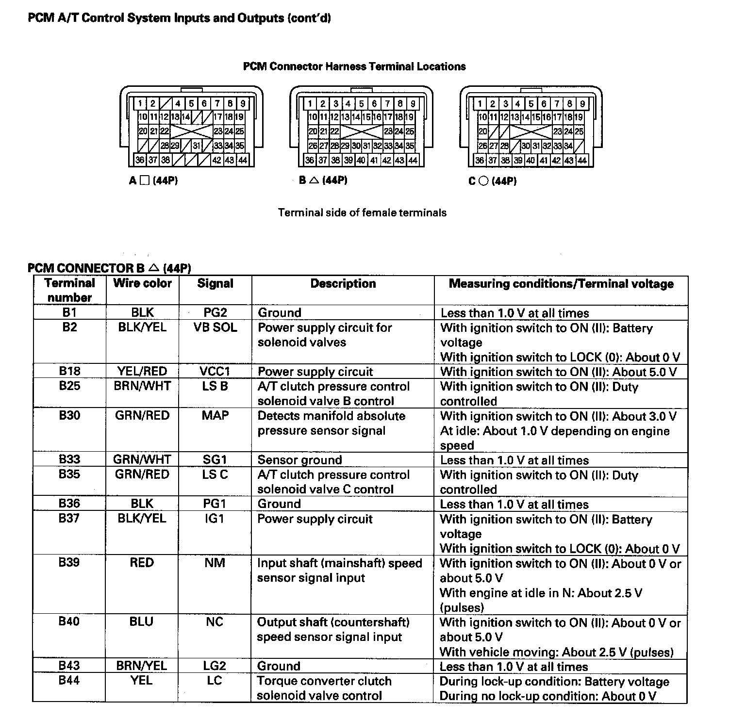 Control Module Pinout Values