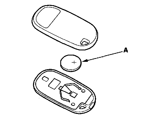 3. Replace the transmitter battery (A) with a new one, and try to lock and unlock the doors with the transmitter by pressing the lock or unlock button five or six times.