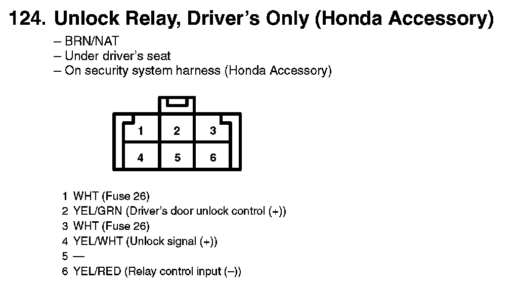124. Unlock Relay, Driver's Only (Honda Accessory):