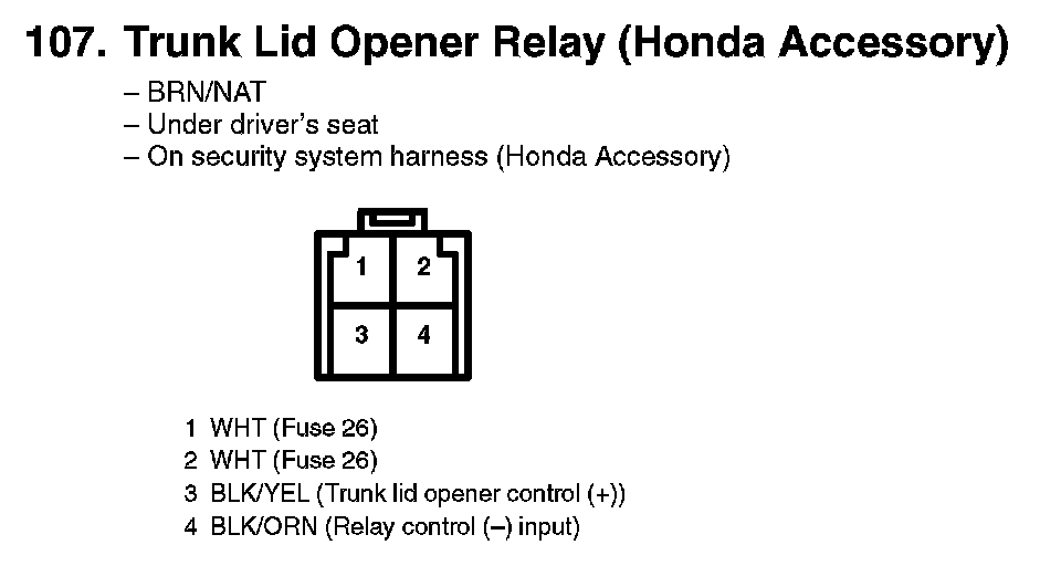 107. Trunk Lid Opener Relay (Honda Accessory):