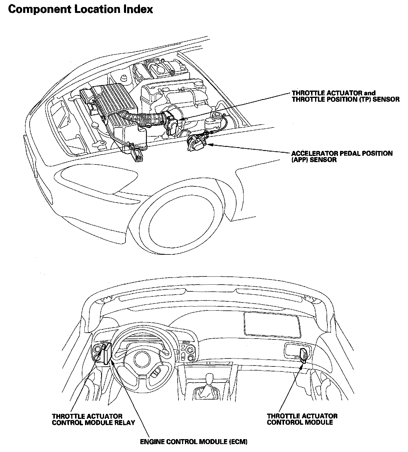 Electronic Throttle Control System Component Location Index: