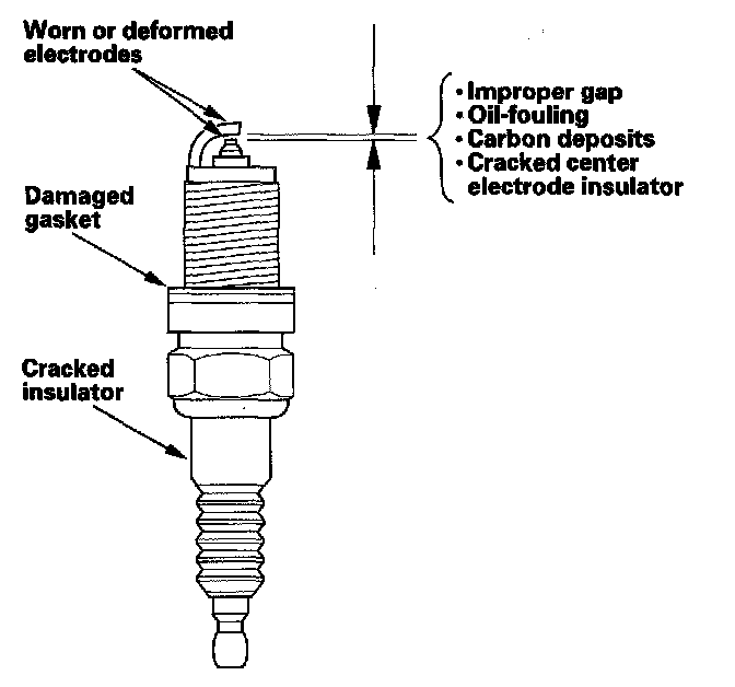 Spark Plug Inspection1. Remove the spark plugs and inspect the electrodes and ceramic insulator.