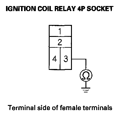 12. Check for continuity between ignition coil relay 4P socket terminal No. 3 and body ground.