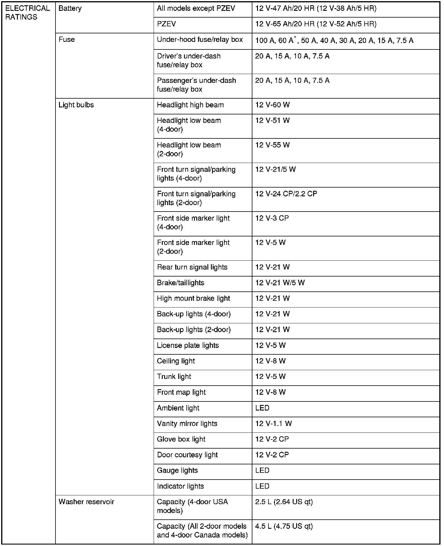 *: Except LX, LX PZEV