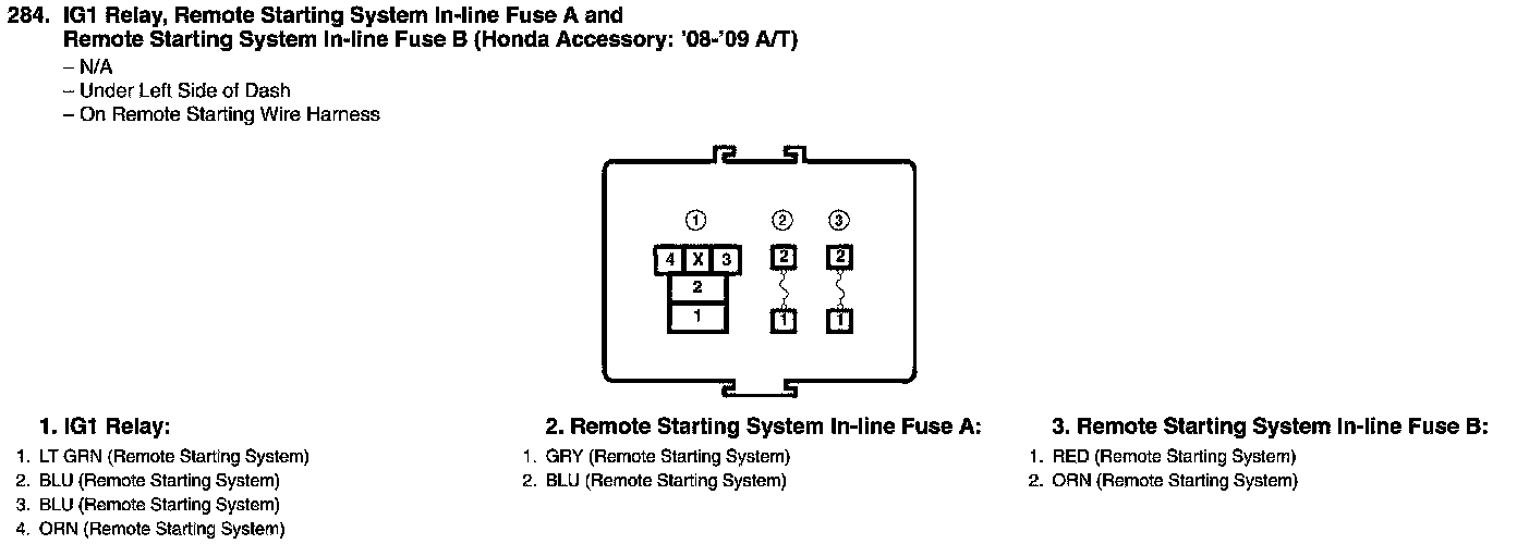 IG1 Relay, Remote Starting System In-line Fuse A And Remote Starting System In-line Fuse B Connector View (Honda Accessory: A/T