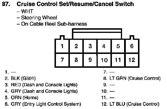 View 87 Cruise Control Set/Resume/Cancel Switch Connector View