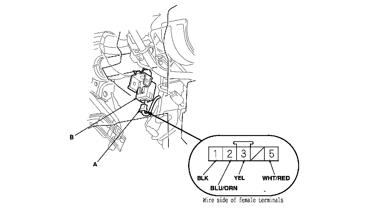 2. Disconnect the 5P connector (A) from the keyless receiver unit (B).