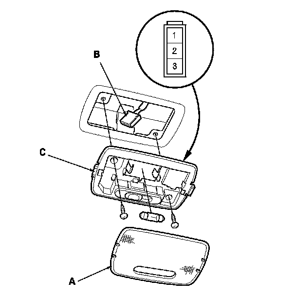 6. If the continuity is not as specified, check the bulb. If the bulb is OK, replace the ceiling light assembly.