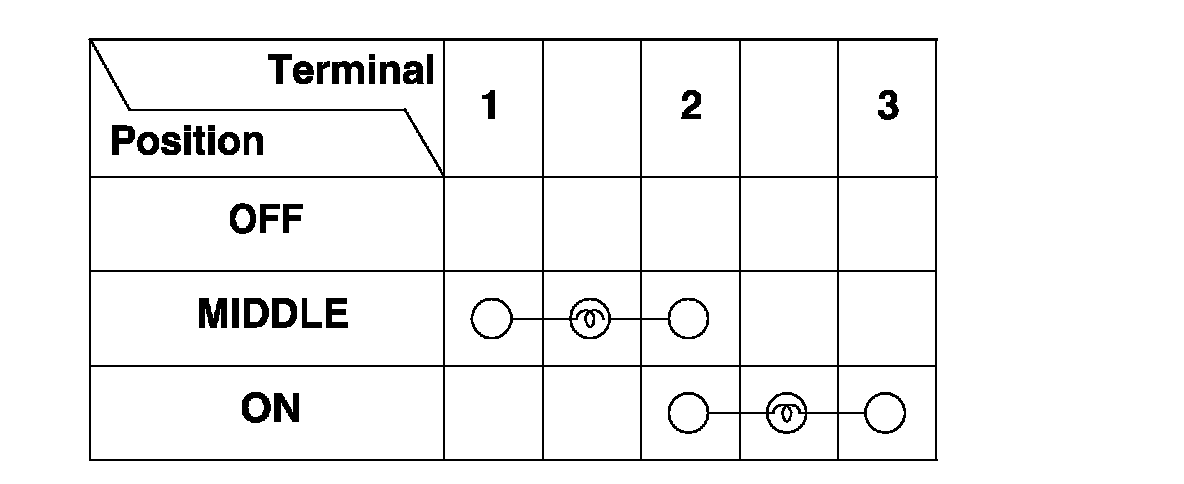 5. Check for continuity between the terminals in each switch position according to the table.