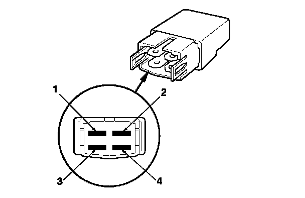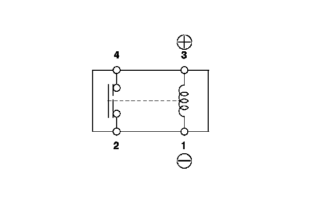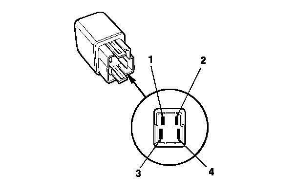 - There should be continuity between terminals No. 3 and No. 4 when the battery positive terminal is connected to terminal No. 2, and the battery negative terminal is connected to terminal No. 1.