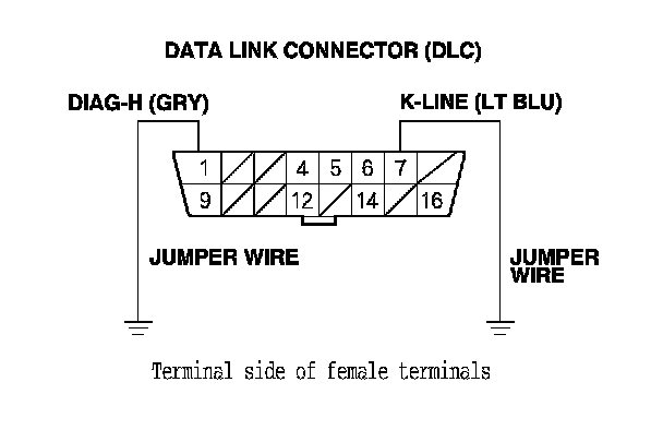 18. Connect DLC terminals No. 1 and No. 7 to body ground with a jumper wire.