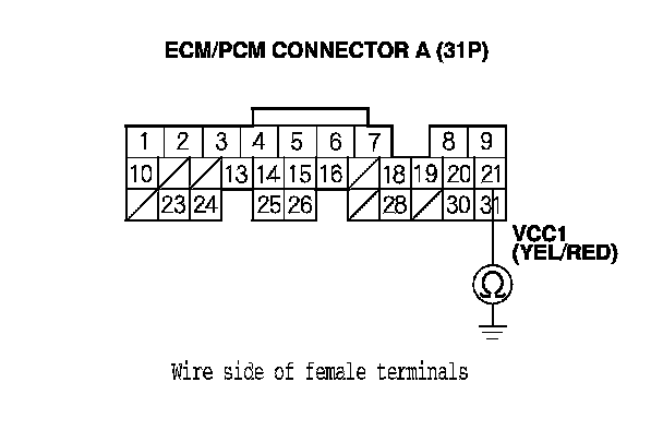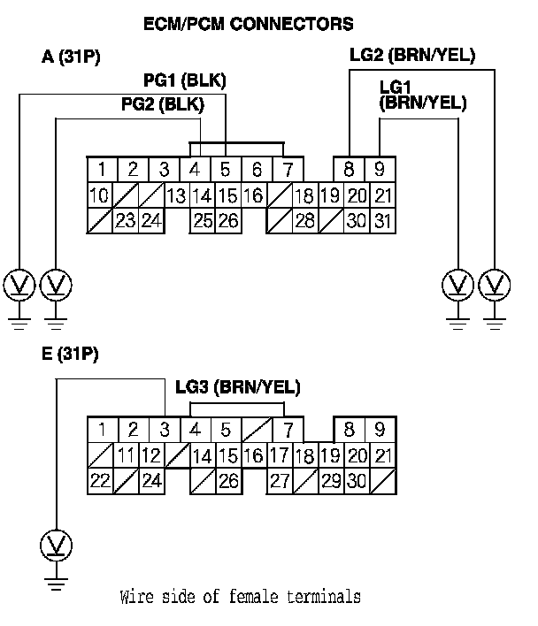 31. Check for continuity between ECM/PCM connector terminal E11 and body ground.