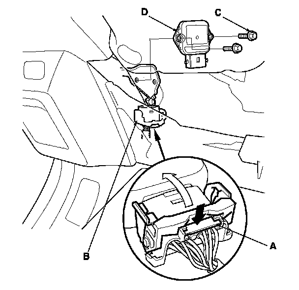 2. Remove the bolts (C), and the throttle actuator control module (D).