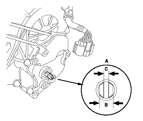 8. Remove the transmission range switch, and check the end of the selector control shaft (A).